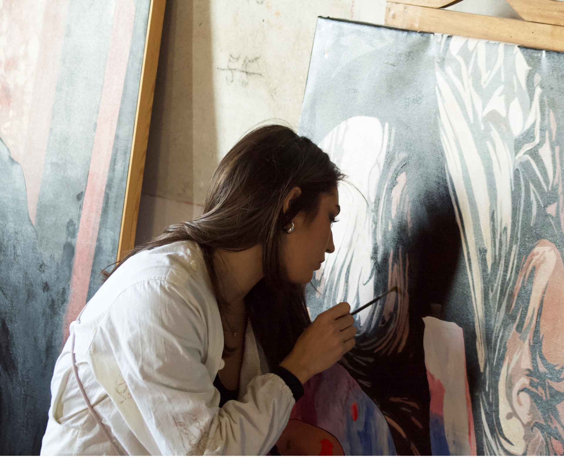 We are sisters, and since childhood we have drawn, painted, and created sculptures, jewelry, and much more. We chose not to pursue formal studies in art, as for us these practices were already a natural, instinctive form of expression—skills rooted in our everyday lives. We grew up not in an artistic milieu, which we have always kept at a distance, but surrounded by paint, brushes, and all kinds of materials for creative reuse. Even though our current focus is painting, our artistic journey began as a form of constant experimentation.